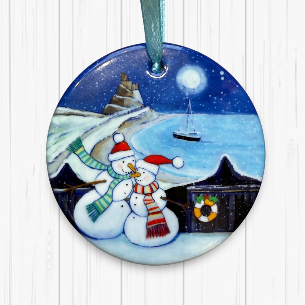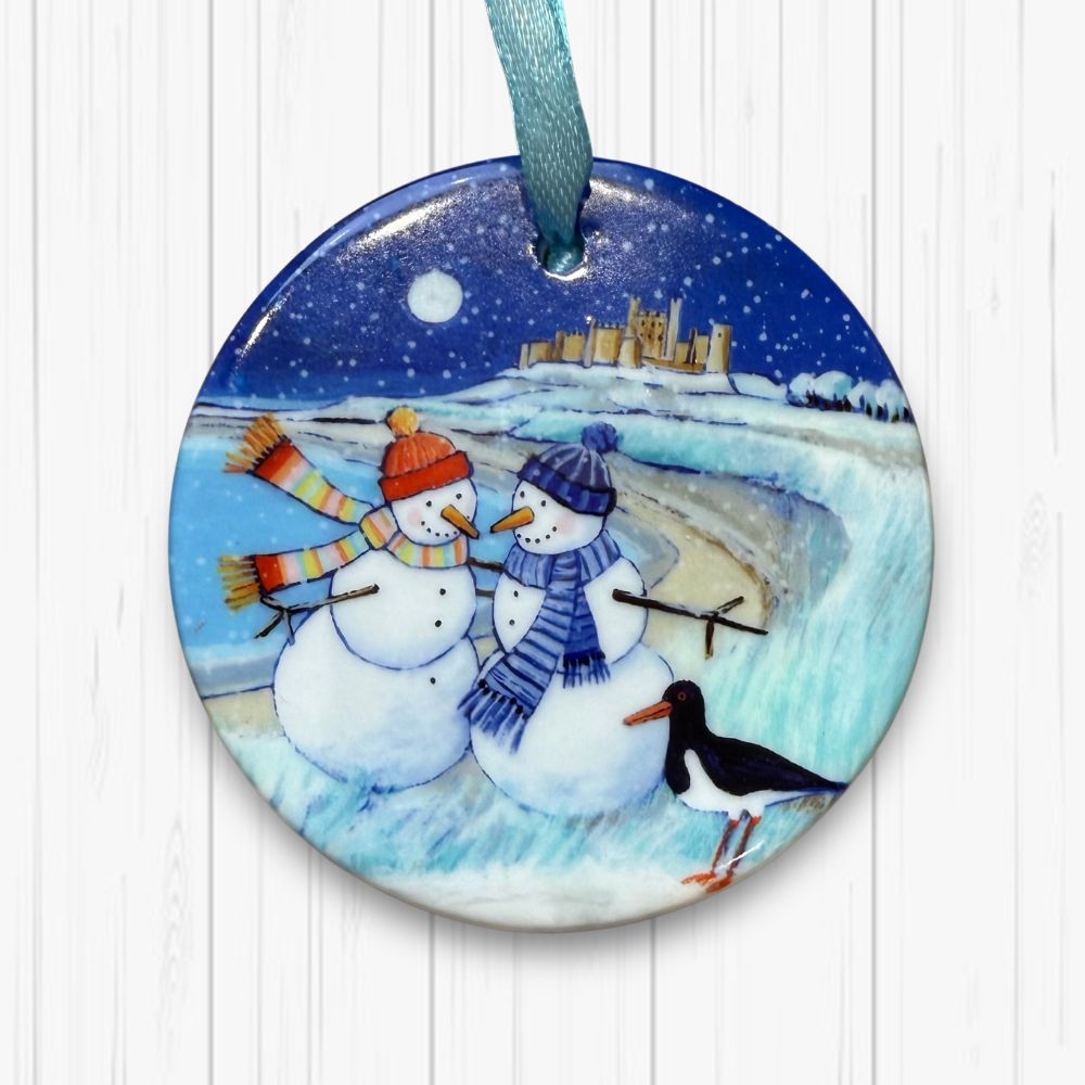Snowmen at Lindisfarne - Ceramic Tree Decoration