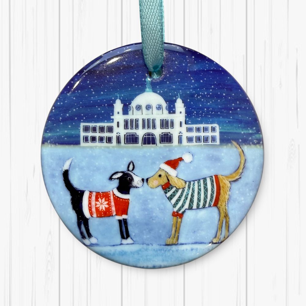 Whitley Bay Winter Woofs Ceramic Tree Decoration