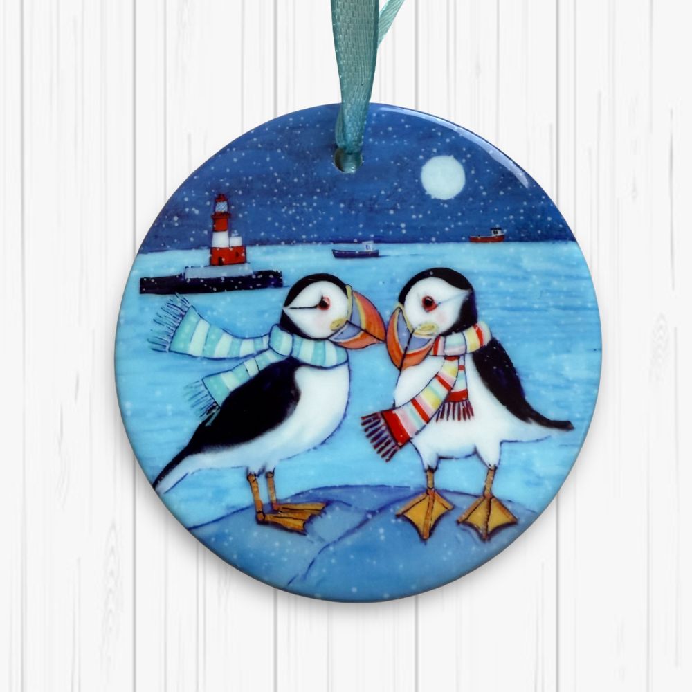 Puffins and Sea Pinks - Ceramic Tree Decoration