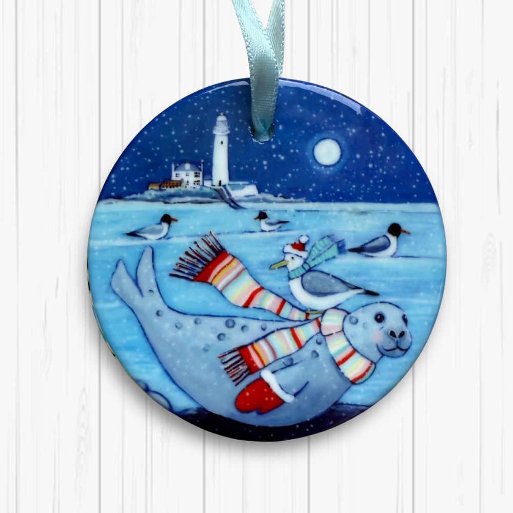 Festive Seal at St Mary's Lighthouse Ceramic Tree Decoration